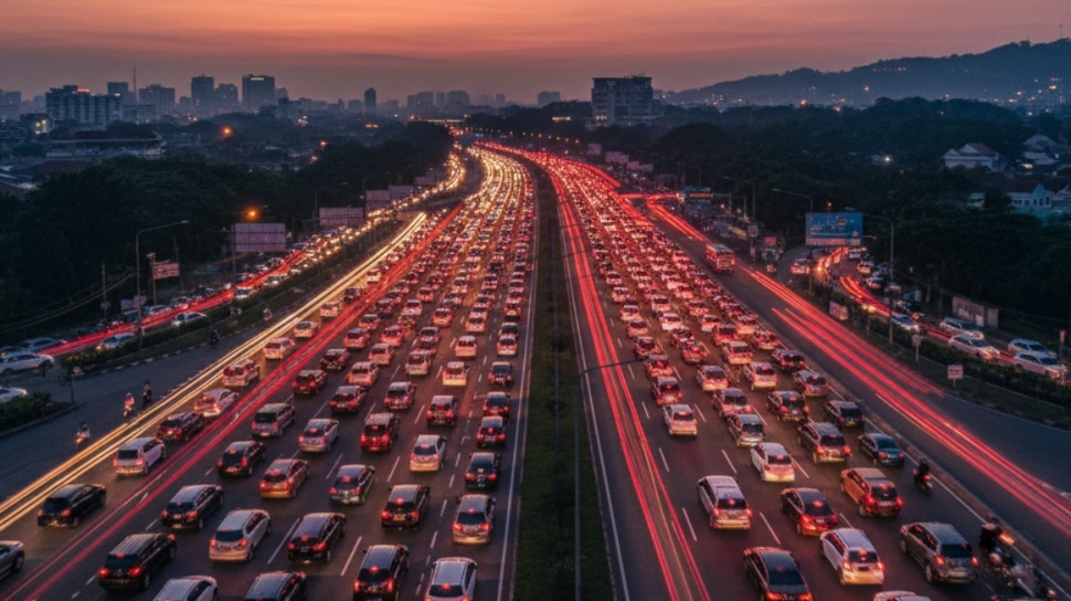 Ilustrasi kemacetan lalu lintas di Indonesia (Gemini AI)