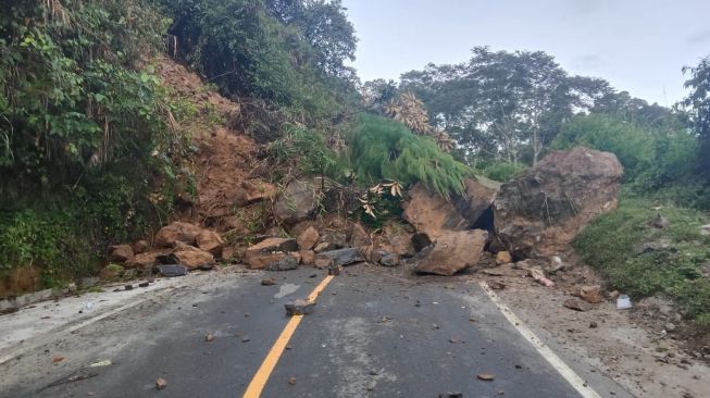 Untuk akses jalan di lokasi tersebut untuk saat ini tidak dapat dilalui lantaran material longsor menimbun badan jalan.