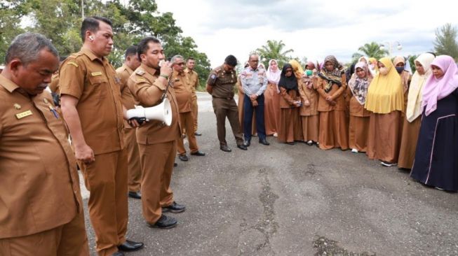 KOTA JANTHO | ACEH INFO – Penjabat Bupati Aceh Besar, Muhammad Iswanto, menerima audiensi damai para guru yang berstatus Pegawai Pemerintah dengan Perjanjian Kerja (PPPK) di kompleks Meuligo Bupati Aceh Besar, Senin siang, 6 Februari 2023.