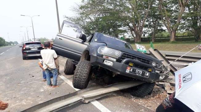 Sebuah kendaraan Land Cruiser hitam A 1779 CM yang dikemudikan Dodi Bagus (46) warga Griya Cilegon, Kabupaten Serang melaju di lajur kanan dengan kecepatan tinggi menuju Tangerang menabrak pembatas jalan hingga kondisi mobil berbalik arah Merak.