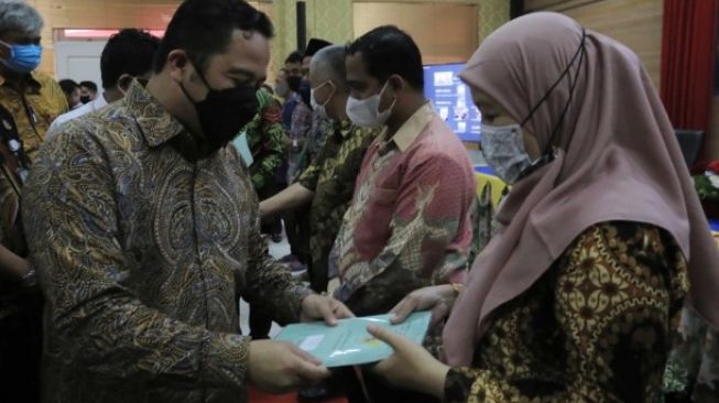 TANGERANG – Walikota Tangerang, Arief R Wismansyah menyerahkan langsung 1.046 Sertipikat Hak Atas Tanah (SHAT) secara simbolis kepada 18 orang warga dari 9 Kelurahan di Kota Tangerang dalam program Pendaftaran Tanah Sistematis Lengkap (PTSL) Tahun Anggaran 2022.