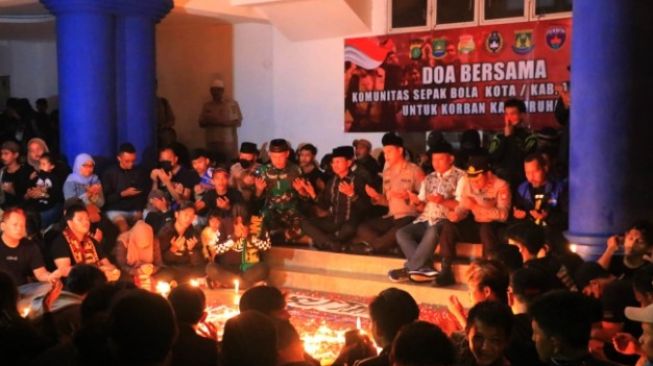 TANGERANG – Wakil Walikota Tangerang, Sachrudin dan jajaran Polres Metro Tangerang Kota bersama Komunitas Suporter Sepak Bola Tangerang Raya melaksanakan kegiatan doa bersama dalam rangka mendoakan korban tragedi Stadion Kanjuruhan Malang Provinsi Jawa timur pada 1 Oktober 2022 lalu.