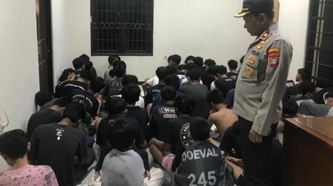 TANGERANG – Sebanyak 72 remaja yang berasal dari Kota Tangerang, Kabupaten Tangerang, dan Kabupaten Serang digiring ke Mapolres Metro Tangerang. Mereka ditangkap lantaran diduga hendak melakukan aksi tawuran pada Minggu (15/1/2023) dini hari.