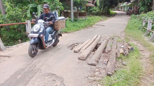 “Kondisi jalan berlubang dan bergelombang ini sudah berlangsung bertahun-tahun. Jembatan yang bolong ini juga terjadi bertahun-tahun dan hingga saat ini belum ada perbaikan,” kata Deri, seorang warga yang rumahnya tidak jauh dari lokasi jembatan berlubang tersebut, Rabu (8/3/2023).