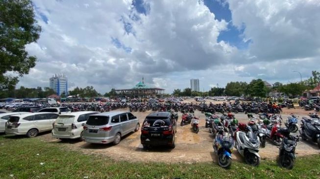 Batam, Batamnews - Pengemudi transportasi berbasis online di Batam, Kepulauan Riau menggelar unjuk rasa damai di lapangan Welcome To Batam, kawasan Batam Center, Kamis (15/9/2022).