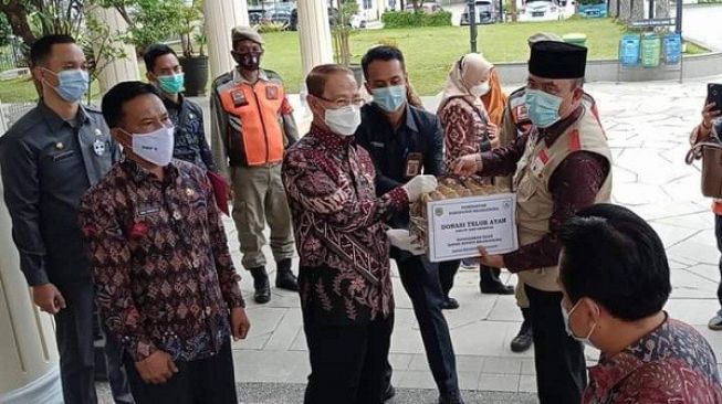 fajarsatu – Pemerintah Kabupaten Majalengka melalui Dinas Ketahanan Pangan, Pertanian dan Perikanan (DKP3) Kabupaten Majalengka menyalurkan sumbangan 1500 butir telur dari Corporate Social Responsibility (CSR) PT Bibit bertempat di Pendopo Gedung Negara, Kamis (25/2/2021).