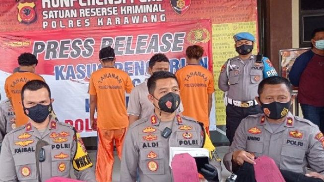 “Pelaku ini ditangkap setelah melakukan kejahatan yang menyebabkan korbannya meninggal, dan alhamdulillah dalam waktu tiga hari jajaran Polsek Kota berhasil menangkap komplotan pelaku curas ini,” kata Kapolres Karawang. AKBP Aldi Subartono kepada wartawan di Mapolres Karawang, Sabtu (11/9/2021).