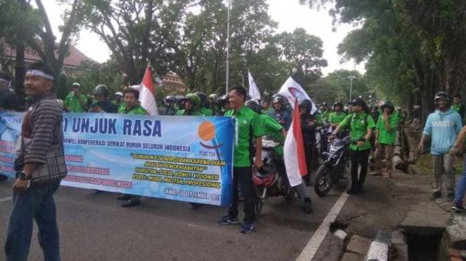 JAMBISERU.COM, Jambi – Selain mahasiswa, buruh dari berbagai perusahaan di Provinsi Jambi pun ikut turun aksi hari ini, Senin (30/10/2019), di komplek perkantoran Telanaipura, Kota Jambi.