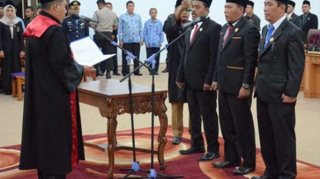 JAMBISERU.COM, Tebo – Setelah mengalami proses yang cukup panjang, akhirnya DPRD Tebo hari senin (28/10/2019) menggelar pelantikan dan pengambilan sumpah unsur pimpinan DPRD Tebo periode 2019-2024 diruang sidang utama DPRD Tebo.