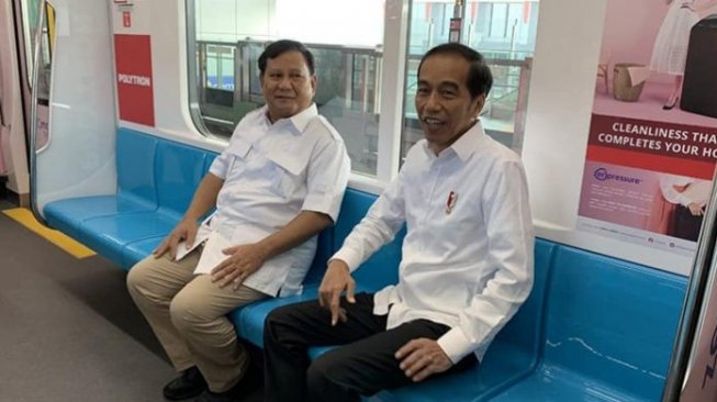 Setelah menaiki kereta MRT dari Stasiun Lebak Bulus, Presiden terpilih Joko Widodo (Jokowi) dan Ketua Umum Partai Gerindra Prabowo Subianto melanjutkan pertemuan dengan makan siang bersama di restoran Sate Khas Senayan, mall FX Sudirman, Jakarta, Sabtu (13/7/2019).