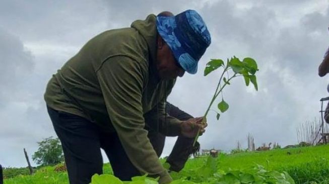 Selain panen bayam, Gubernur Waterpauw juga menanam bibit pepaya yang didatangkan dari Institut Pertanian Bogor (IPB). Disiapkan 5 bungkus bibit untuk ditanam.