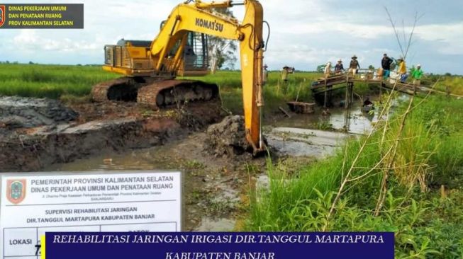 KANALKALANTAN.COM, BANJARBARU – Dinas Pekerjaan Umum dan Penataan Ruang (PUPR) Provinsi Kalimantan Selatan melalui Bidang Sumber Daya Air melakukan rehabilitasi jaringan irigasi (DIR) Tanggul Martapura, Kabupaten Banjar.