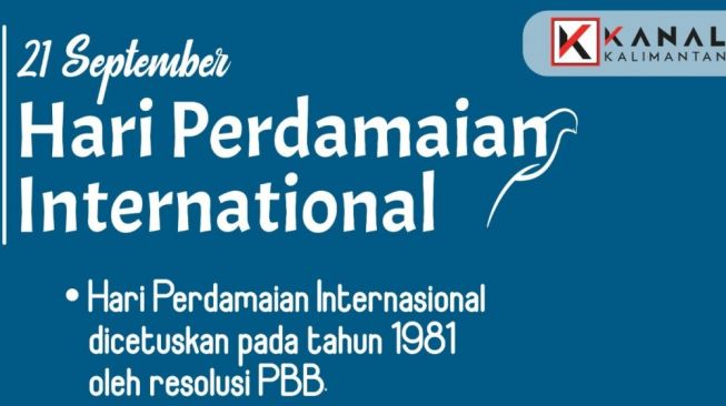 KANALKALIMANTAN.COM – Hari Perdamaian Internasional atau International Peace Day (Peace Day) 2022 akan diperingati di seluruh dunia pada tanggal 21 September. Hari ini dicetuskan pada tahun 1981 oleh resolusi Perserikatan Bangsa-Bangsa.