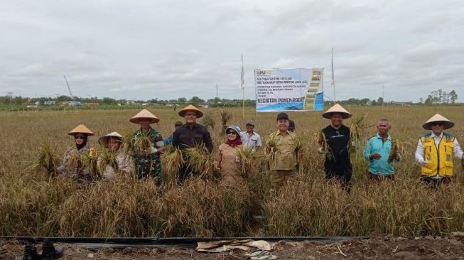 Hal ini disampaikannya langsung saat melakukan panen padi demplot Kementerian Pekerjaan Umum Penataan Ruang (Kemen PUPR) pada kegiatan uji coba sistem tata air di Desa Bentuk Jaya, Kecamatan Dadahup, Selasa (10/1/2023).
