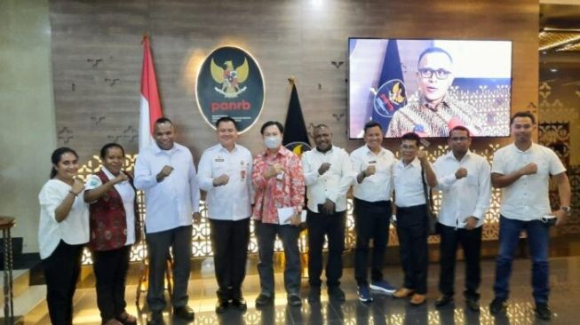 KAPOL.ID – Pj Bupati Maybrat, Dr. Bernhard E. Rondonuwu, S.Sos. M.Si didampingi Asisten II, Kepala BKPSDM, Kepala Dinas Pendidikan, Kepala Dinas Kesehatan mendatangi Kemenpan RB, Kamis (22/9).