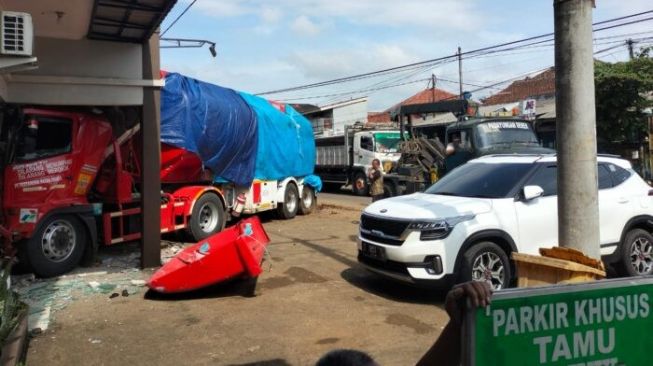 Truk berisi 8.000 liter BBM itu hilang kendali dan menabrak klinik MMC yang berada di arah berlawanan.