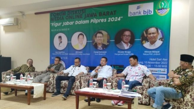 Forum Diskusi Media Online Jawa Barat menggelar diskusi dengan tema “Figur Tokoh Jabar di Pilpres 2024”, yang menghadirkan sejumlah nara sumber dari kalangan parpol, akademisi dan tokoh media.