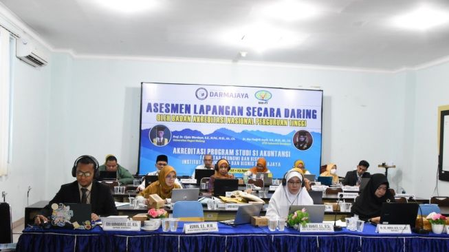 Senin, 15 Agustus 2022 64 Views Asandy GK Darmajaya BANDAR LAMPUNG (Lampungpro.co) : Program Studi (Prodi) Akuntansi Institut Informatika dan Bisnis (IIB) Darmajaya menjalani asessment lapangan oleh Badan Akreditasi Nasional Perguruan Tinggi (BAN-PT) secara daring selama dua hari Jumat–Sabtu (12–13/8/2022). Dalam asessment itu, hadir Asessor Prof. Dr. Cipto Wardoyo, S.E., M.Pd., M.Si., Ak., CA. dan Dr. Nur Fadjrih Asyik, S.E., M.Si., Ak., CA. Kegiatan asesmen turut dihadiri Rektor IIB Darmajaya Dr. H. Ir. Firmansyah Y. Alfian, MBA., M.Sc., bersama Wakil Rektor 1, 2, dan Wakil Rektor 3.