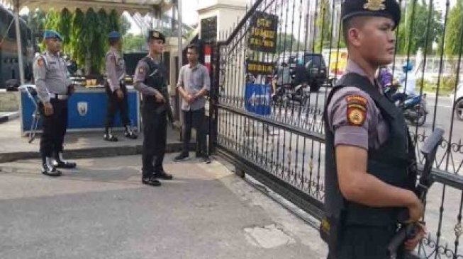 RIAU ONLINE, PEKANBARU - Kepolisian Daerah (Polda) Riau memperketat penjagaan Markas Komando (Mako) pascainsiden bom bunuh diri Mako Polrestabes Medan, Sumatera Utara, Rabu pagi, 13 November 2019.