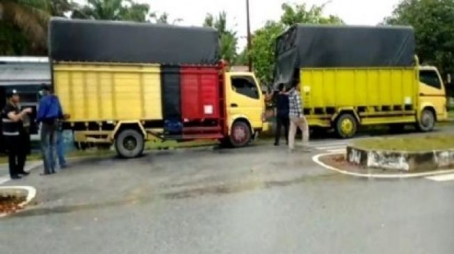 RIAUONLINE, PELALAWAN - Lima truk diduga berisi rokok ilegal disergap petugas gabungan Bea dan Cukai (BC) Pekanbaru, Rabu, 29 Januari 2020 di Jalan Luntas Bono (Jalinbon), Kelurahan Pangkalan Bunut, Kecamatan Bunut, Pelalawan, Riau.
