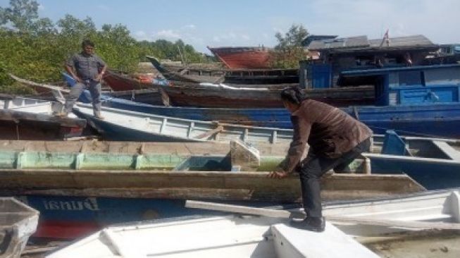 Kedua tersangka Rusli dan Ikram, warga Desa Teluk Lancar, Kecamatan Bantan beserta kapal pengangkut barang bekas diserahkan langsung Komandan Kapal Polisi (KP) Kedidi-3015 Ditpolair Korpspolairud Baharkam Polri Ipda Rizky Hidayah Harahap.
