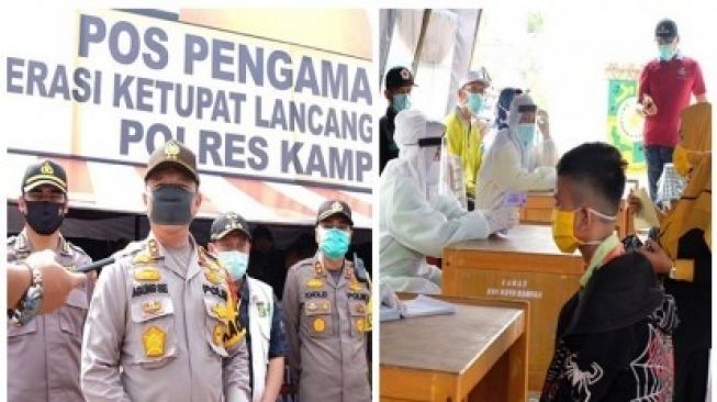 RIAU ONLINE, PEKANBARU - Kepala Polisi Daerah (Kapolda) Riau, Irjen Pol Agung Setya Imam Effendi, mengecek langung pelaksanaan pelarangan mudik di Pos Pengamanan Operasi Ketupat Lancang Kuning 2020, Minggu 26 April 2020 di XIII Koto Kampar, Kabupaten Kampar.
