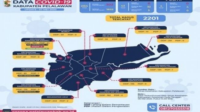 "Dari jumlah kasus ODP sebanyak 2.154 orang, alhamdulillah sudah 1.852 orang diantaranya yang sudah dinyatakan selesai pemantauan dan 302 orang lagi yang saat ini sedang menjalani proses pemantauan dari tim gugus tugas,"ungkap juru bicara gugus tugas Covid-19 Pelalawan, Asril, melalui gugus tugas bidang layanan dan informasi, Hendry Gunawan, Kamis, 7 Mei 2020.