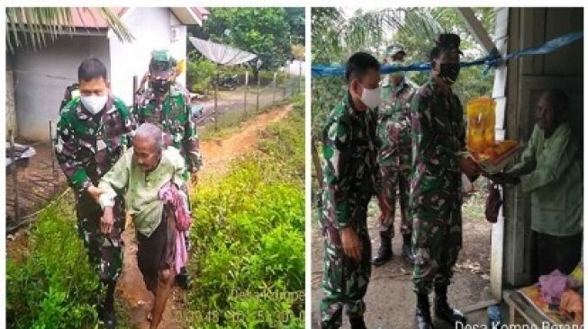 Kedatangan anggota TNI untuk memberi paket bantuan sembako dan sedikit uang serta melakukan pemasangan listrik untuk penerangan dirumah tersebut.