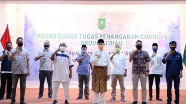 RIAU ONLINE, PEKANBARU -Syamsuar saat menyambut kedatangan pengurus Asosiasi Media Siber Indonesia (AMSI) Riau di gedung daerah, Jumat 12 Juni 2020. Syamsuar mengatakan selama bekerja dia sangat terbantu dengan adanya media.