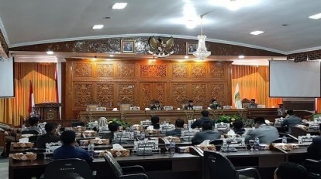 RIAU ONLINE, TELUK KUANTAN - Rapat Paripurna Dewan Perwakilan Rakyat Daerah (DPRD) Kuansing dengan agenda jawaban Pemerintah Daerah terhadap pandangan umum fraksi-fraksi DPRD terkait Laporan Keterangan Pertanggungjawaban (LKPj) Bupati Tahun 2019 resmi ditunda, Jumat, 3 Juli 2020.