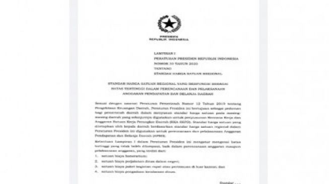 Hal ini setelah, Presiden Republik Indonesia, Joko Widodo menandatangani Peraturan Presiden (Perpres) Nomor 33 Tahun 2020 yang mengatur tentang standar harga satuan regional.
