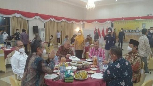 RIAUONLINE, PEKANBARU - Gubernur Riau Syamsuar mengadakan acara ramah tamah dan jamuan makan malam bersama Ketua Tim Panja Migas Komisi VII DPR RI, beserta rombongan, perusahaan, dan unsur Forkopimda Riau.