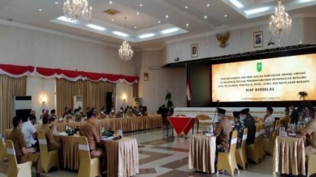 RIAUONLINE, PEKANBARU - Gubernur Riau Syamsuar mengumpulkan seluruh kepala daerah Bupati, Walikota, serta DPRD se-kabupaten/kota untuk membahas usulan maupun aspirasi perihal rencana undang-undang (RUU) Provinsi Riau.