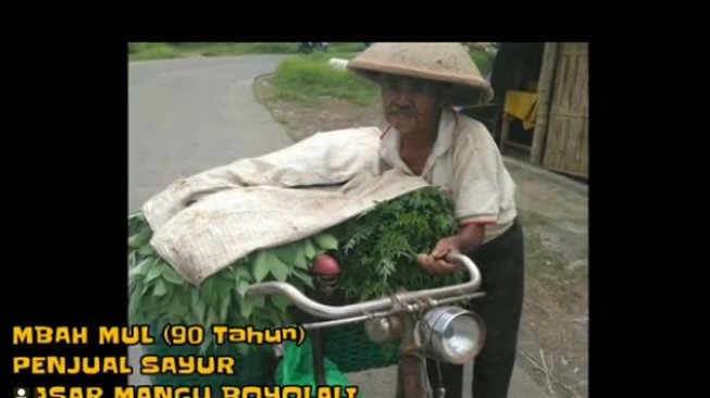 Berdasarkan informasi yang dibagikan pemilik akun Instagram @kuliner.neng.solo, Senin (11/2/2019), Mbah Mul menjajakan sayur dagangannya, seperti daun ketela dan jagung tanpa kenal lelah. Dengan menuntun sepeda tuanya, Mbah Mul berkeliling wilayah sekitar Pasar Mangu, Boyolali dengan sabar.