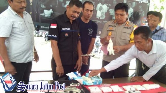 TRENGGALEK, (suarajatimpost.com) - Endra Matofia bin Mispan, warga Dusun Talun, Desa Pelem, Kecamatan Pare, Kabupaten Kediri, harus merasakan dinginya sel Mapolres Trenggalek, karena mengedarkan pil dobel L.