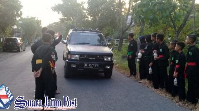 Guna mempersatukan hati dan pikiran antar sesama dan tidak membedakan satu sama lain. Santri Pagar Nusa (PN) PAC Gondang, Kabupaten Nganjuk, Jawa Timur, Kamis (30/5/2019), membagikan ta'jil buka puasa untuk pengguna jalan.