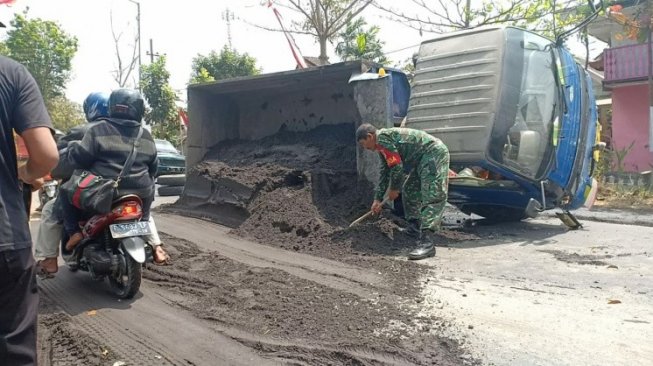 "Saya ambil pasir dari kabupaten Lumajang hendak pulang ke grenden Puger tiba tiba rem Blong dan laju kendaraan tidak bisa saya kendalikan dan truk saya terguling ke arah selatan jalan hingga saya terseret tiga meter, namun beruntung mas saya tidak tergencet badan truk,"ucapnya Rohali pengemudi supir truk.