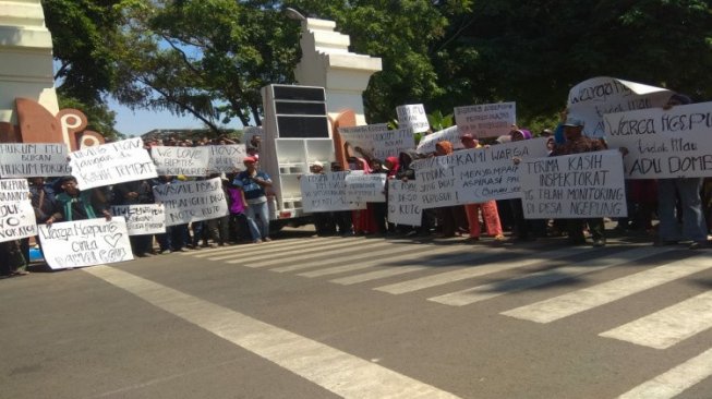 NGANJUK, - Ratusan Kepala Desa se Kabupaten Nganjuk, yang tergabung dalam Asosiasi Kepala Desa (AKD) Nganjuk, Jawa Timur. Pada Selasa (10/9/2019) mengruduk Pendopo Kabupaten Nganjuk.