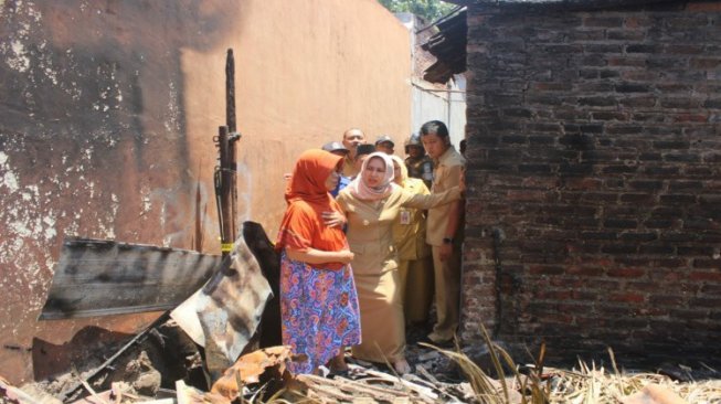 Wali Kota Mojokerto Ika Puspitasari, Senin (16/9/2019) kemarin, meninjau rumah Nur Hayati, korban kebakaran di Lingkungan Kemasan, Kelurahan Blooto, Kecamatan Prajurit Kulon. Mojokerto kota.