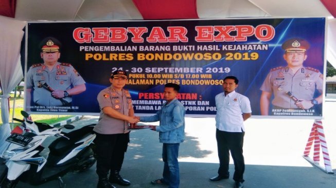 Polres Bondowoso menggelar gebyar expo pengembalian barang bukti hasil kejahatan selama enam bulan, yang dibuka pada hari Selasa, 24 sampai 30 September 2019 di halaman Polres Bondowoso.