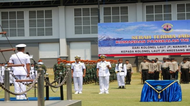 Sertijab Komandan Lanal (Pangkalan Angkatan Laut) Malang dari Kolonel Laut (P) Nanang Hariono kepada Kolonel Laut (P) Hreesang Wisanggeni di Lapangan Mako Lanal Malang, berlangsung hikmat. Rabu (25/9/2019).