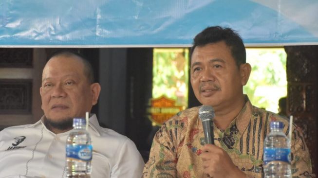 Plt Bupati Mojokerto, Pungkasiadi menyambut Kunjungan Kerja (Kunker) Ketua Dewan Perwakilan Rakyat (DPR) RI La Nyalla Mahmud Mattalitti di kediaman Ayub Busono Listyawan, Desa Randubango Kecamatan Mojosari. Selasa (24/12) siang.