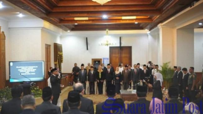 Penghargaan diterima oleh Wakil Bupati Probolinggo, Timbul Prihanjoko, usai acara Pelantikan dan Pengambilan Sumpah Jabatan Kepala Perwakilan Jawa Timur oleh Gubenur Jawa Timur di Gedung Negara Grahadi, Senin (20/1/2020).