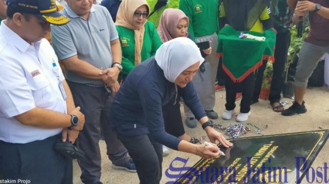 BOJONEGORO,- Bupati Kabupaten Bojonegoro, Anna Muawwanah akhirnya meresmikan taman Lokomotif. Jumat, (24/1/20).