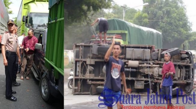 SITUBONDO - Tabrakan beruntun terjadi terjadi di jalur pantura Lamongan, Arjasa, Situbondo, Jawa Timur, melibatkan dua truk dan satu mobil phanter, yang mengakibatkan mobil phanter ringsek bodi depan dan belakang, Senin ( 10/2/2020).