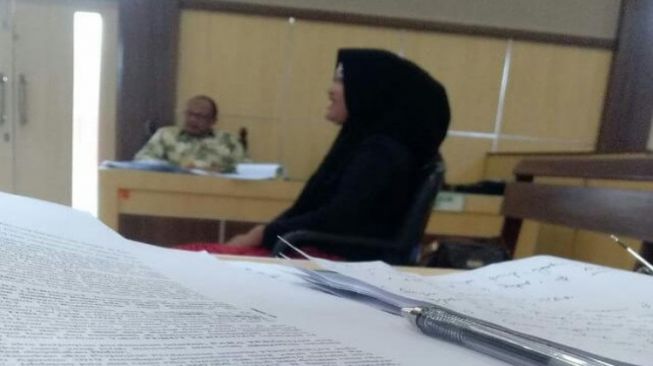 PAMEKASAN - Elis Djunaidi, salah seorang saksi kasus penipuan arisan online yang menjalani sidang di Pengadilan Negeri (PN) Pamekasan, Kamis (19/3/2020).