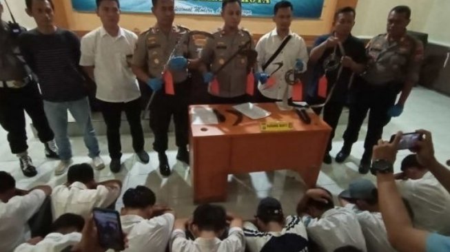 SUKABUMIUPDATE.com - Jika pada umumnya perayaan Hari Guru Nasional dirayakan dengan kreativitas, namun hal berbeda dilakukan pelajar di wilayah Serang. Bertepatan dengan peringatan hari guru, puluhan pelajar dari SMK dan SMP di Kota Serang dan Kabupaten Serang ditangkap polisi karena hendak melakukan tawuran.