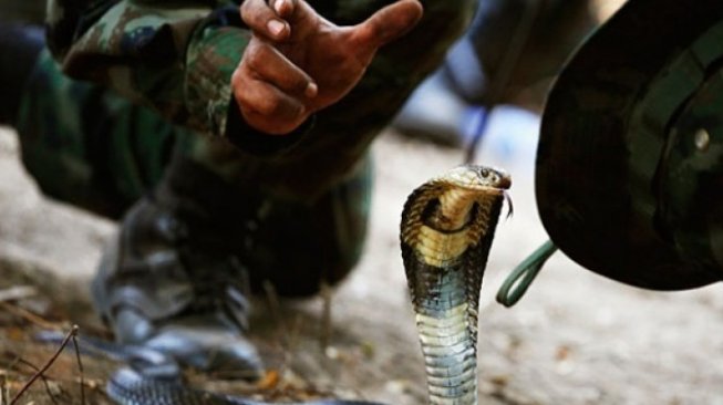 "Dia (Kobra Jawa) kalau matuk langsung nyemburin bisa, kalau King Cobra biasanya hanya menggigit kecuali benar-benar terancam," ucap Rizki, Senin 9 Desember 2019.