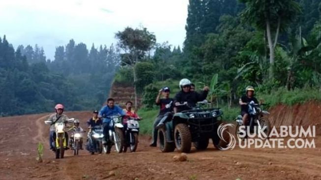 Bupati Sukabumi Marwan Hamami melakukan survey lokasi pembangunan karya bhakti TNI tersebut melalui rute Jalan Lebaksiuh RT 2/11, Rabu (25/12/2019).