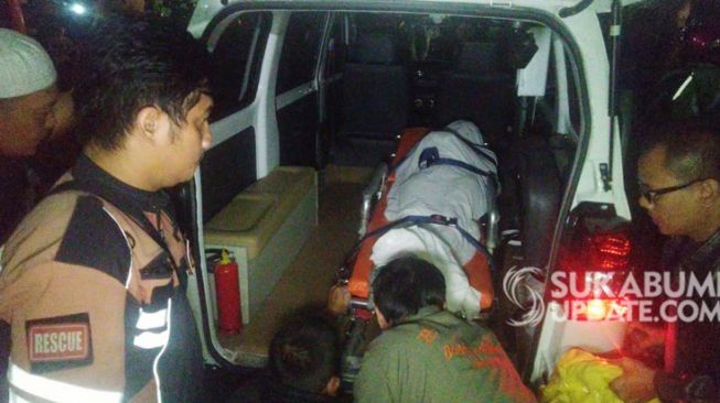 Jenazah Taufik Hidayat (48 tahun) dibawa menggunakan ambulans dari RS Betha Medika Cisaat ke RSUD R Syamsudin SH Kota Sukabumi atau RS Bunut, Minggu (5/1/2020) sekitar pukul 22.45 WIB.
